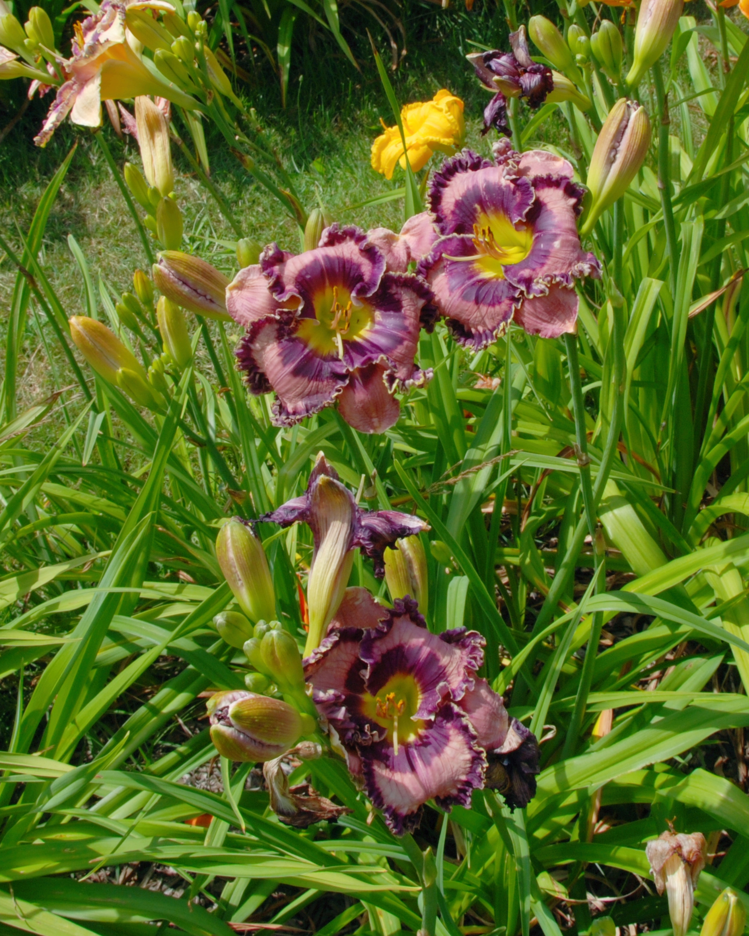 In general, I always use one of my previous registrations or a seedling of mine as one or both of the parents. Sometimes I select a couple of other hybridizer’s cultivars to be the parents and this is one of those rare cases. The parents are beautiful plants, but not as vigorous in Canada as desired. My preferred daylily is one with 40 buds in Canada and re-blooming. This one only produces about 10 buds per stalk, which is normal for a Florida daylily in Canada but way below my desired preferences. However, it makes up for the low bud count in re-blooms. It almost always does two scapes per plant each summer and in a group of ten fans you will get several producing a stalk for a third time each summer. So you have flowers from early July to September. And the flowers are spectacular in color and form. When I found myself always checking if it was in bloom, and by its third year having enough scapes so that most days one or more were in bloom, I realized it was desirable to register it and have some available for sale.