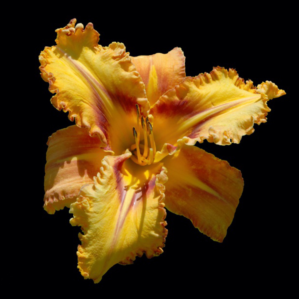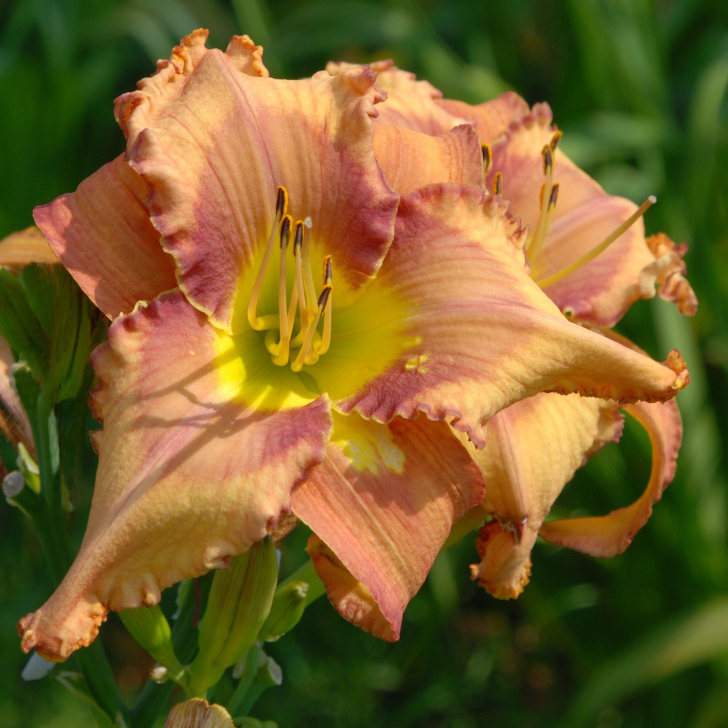 6 inch flowers on a 24 inch stalk, and 10 - 20 buds that bloom from mid July to early August. Semi-Evergreen, very hardy in our northern climate. Pod and Pollen fertile.