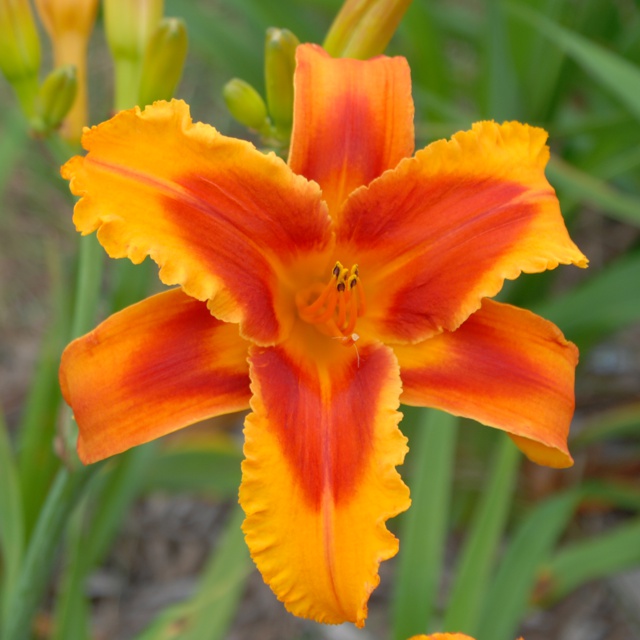 6 to 7 inch flowers on a 36 inch stalk, and 20 - 30 buds that bloom from mid July to early August. Semi-Evergreen, very hardy in our northern climate. Pod and Pollen Fertile.