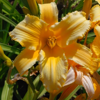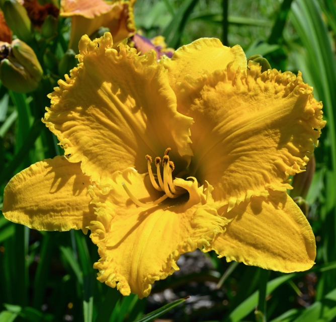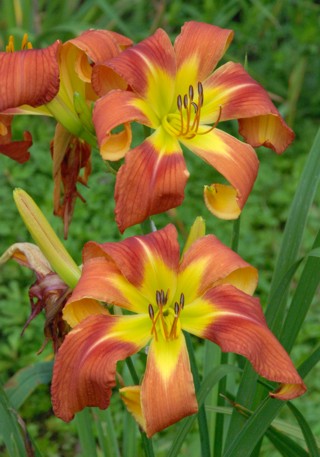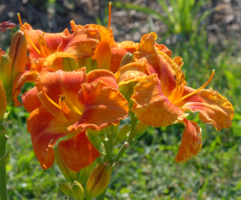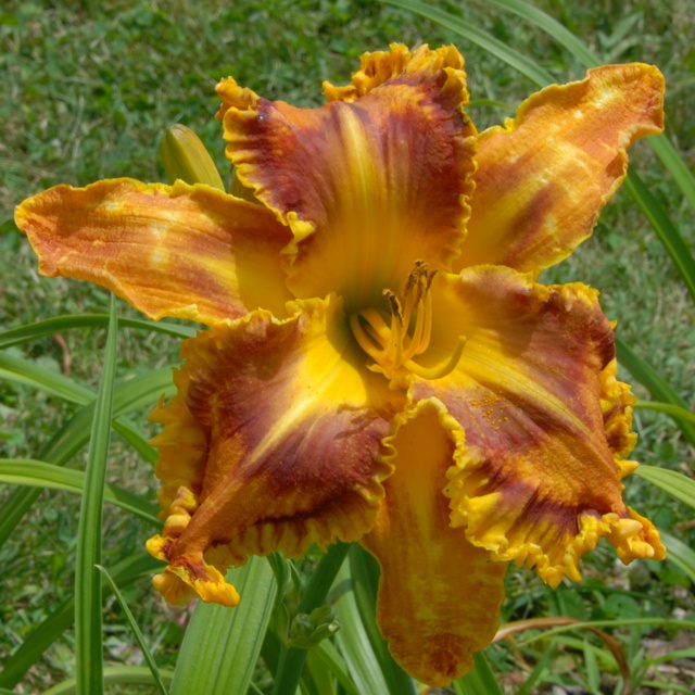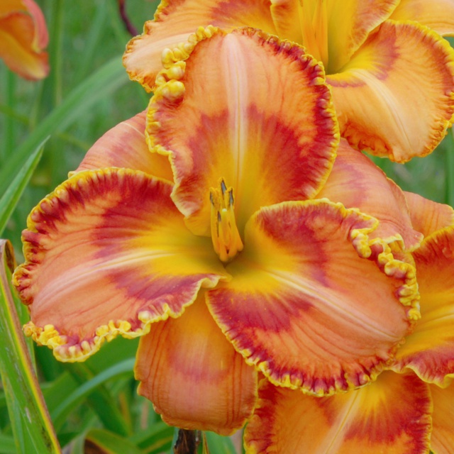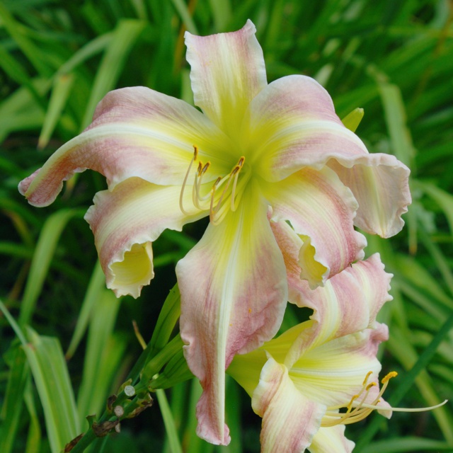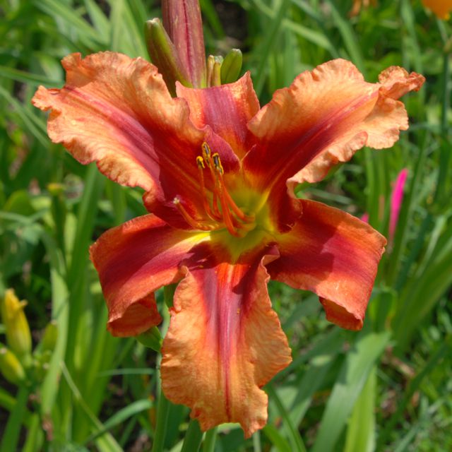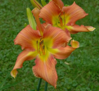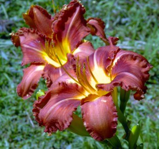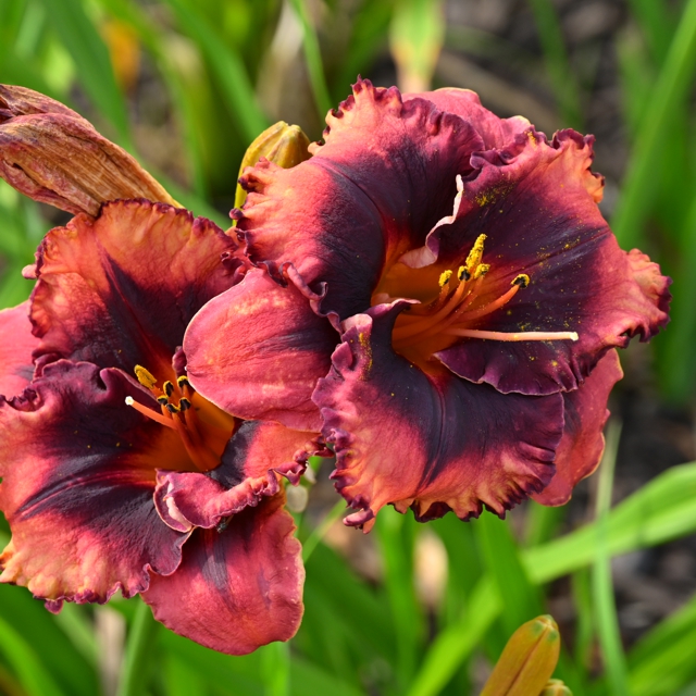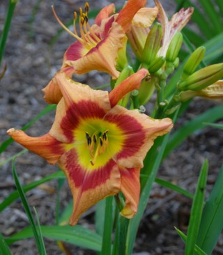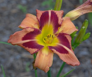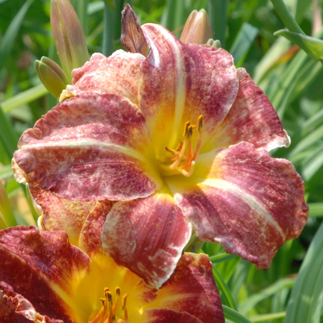 Here are some photos of our seedlings. Note that most of these are single fans at present and will not be for sale for many years. It takes about 10 years to have enough divisions to have enough to sell. The older ones may have many fans or not - in general they have not been in ideal growing conditions so they divided more slowly than if we did fertilize and provide ideal soil. So some old ones still only have a few fans, yet some will have many fans and I would be able to sell some. If you see one you love, ask. If I have enough fans, they will usually be available at $100 per fan. Note that most flowers are 6 inches or larger, on stalks usually in the 24 to 36 inch height range. NOTE: the colors of the newer ones look much brighter than the earlier varieties. THIS IS REAL. They are actually much brighter since that is one characteristic I am breeding for. ALL of these photographs have been taken in sunlight with the SAME CAMERA until 2020 when I bought a new Nikon. I previously used a Nikon D80 which produces nearly exact color on one setting - what I see on the computer looks like what I see in the gardens. |