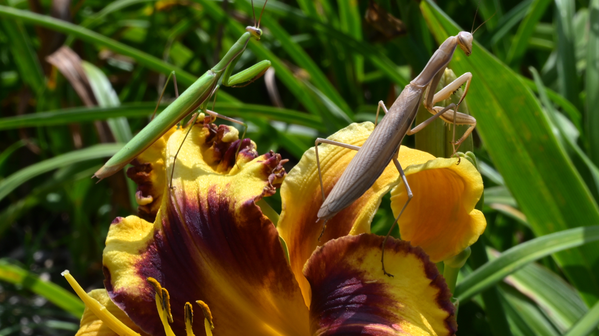 | Photo of the above with two Praying Mantis, Aug 20, 2020. |